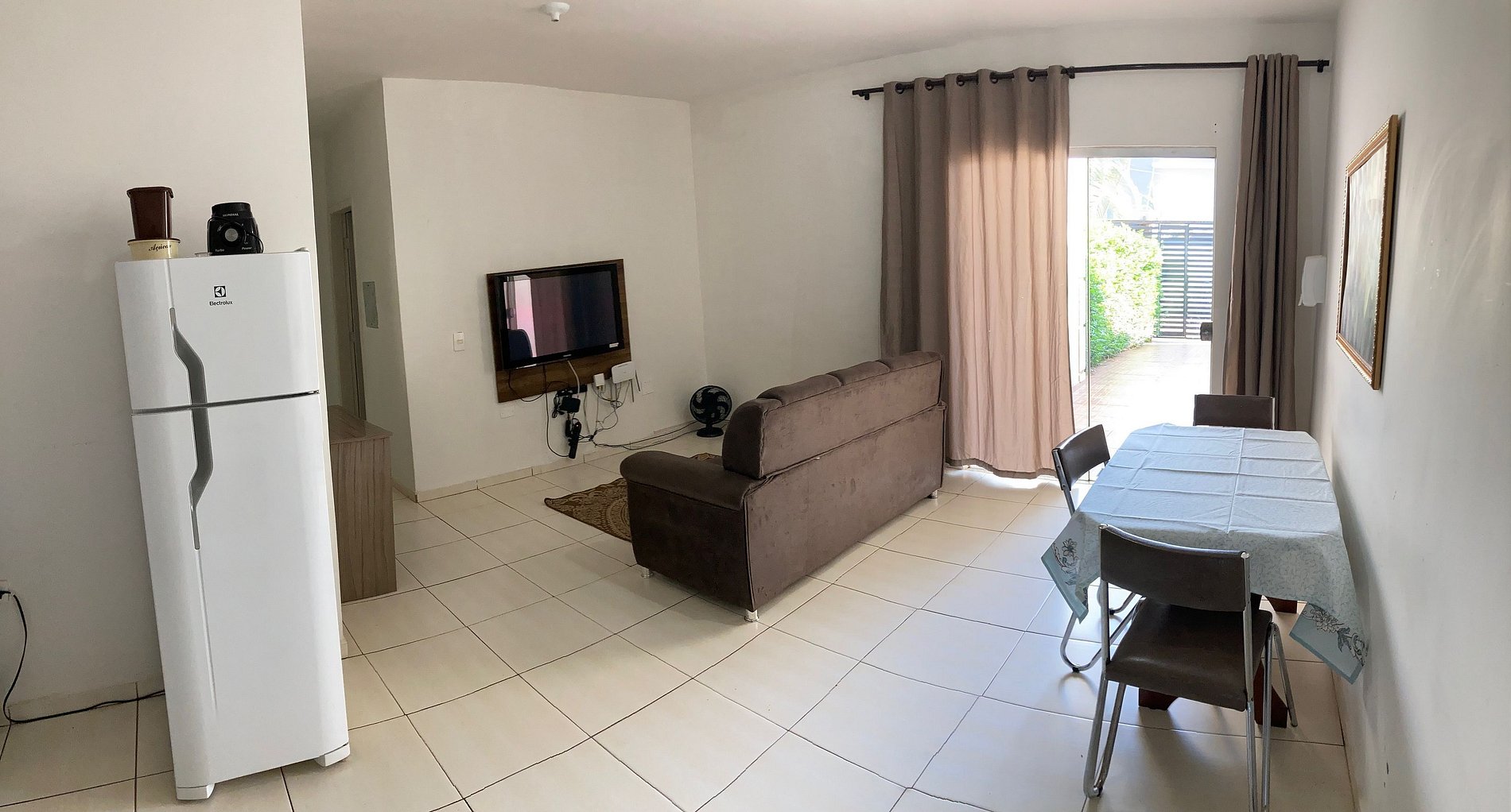 Very spacious apartment, with TV room, dining room and kitchen, being all the open concept space giving greater convenience to guests, a bathroom and three bedrooms being equipped with 2 double beds and 2 single beds and single mattresses as needed and check values. Laundry with tank and space with a barbecue. Parking for 2 cars with electronic gate.