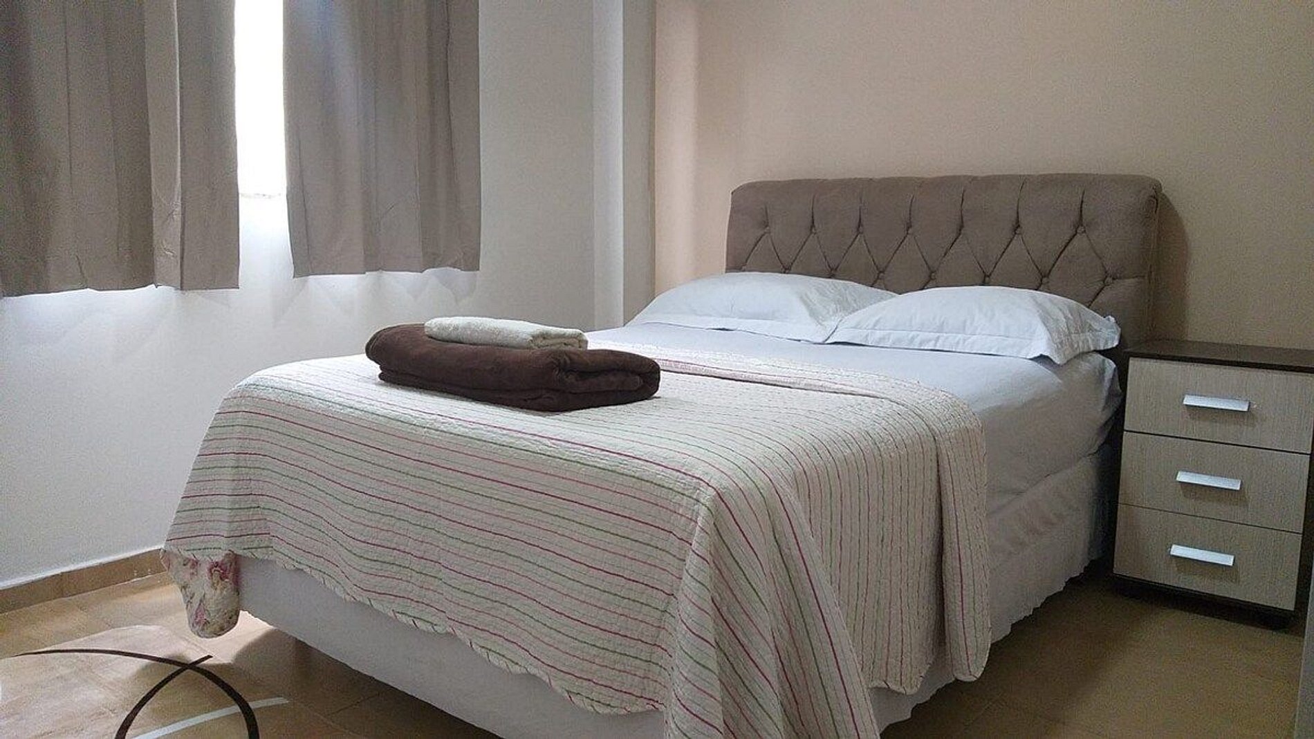 Apartamento 02, se encuentra en la 1ª planta superior y tiene entrada con hall/escalera en común con el apartamento 03, con 02 dormitorios, baño, amplio salón y cocina, garaje para 01 coche (dependiendo del tamaño del vehículo puede albergar más 01) con portón electrónico. En este apartamento, tenemos 01 cama doble y 02 camas individuales con cama auxiliar. Como las habitaciones son grandes, así como la sala de estar, podemos agregar colchones adicionales para aumentar la capacidad de ocupación.La cocina se completa con fregadero, armarios, nevera, estufa convencional con GLP, horno microondas, mesa y artículos para el hogar. La sala de estar tiene un televisor smarth y un sofá. Tenemos señal WI-FI lanzada para los huéspedes. Para dormitorios y alojamientos, ofrecemos toda la ropa de cama, con mantas, sábanas y almohadas, además de toallas de baño. La capacidad de ocupación de esta unidad suele ser de 06 personas y se puede ampliar hasta 10 personas con colchones adicionales.