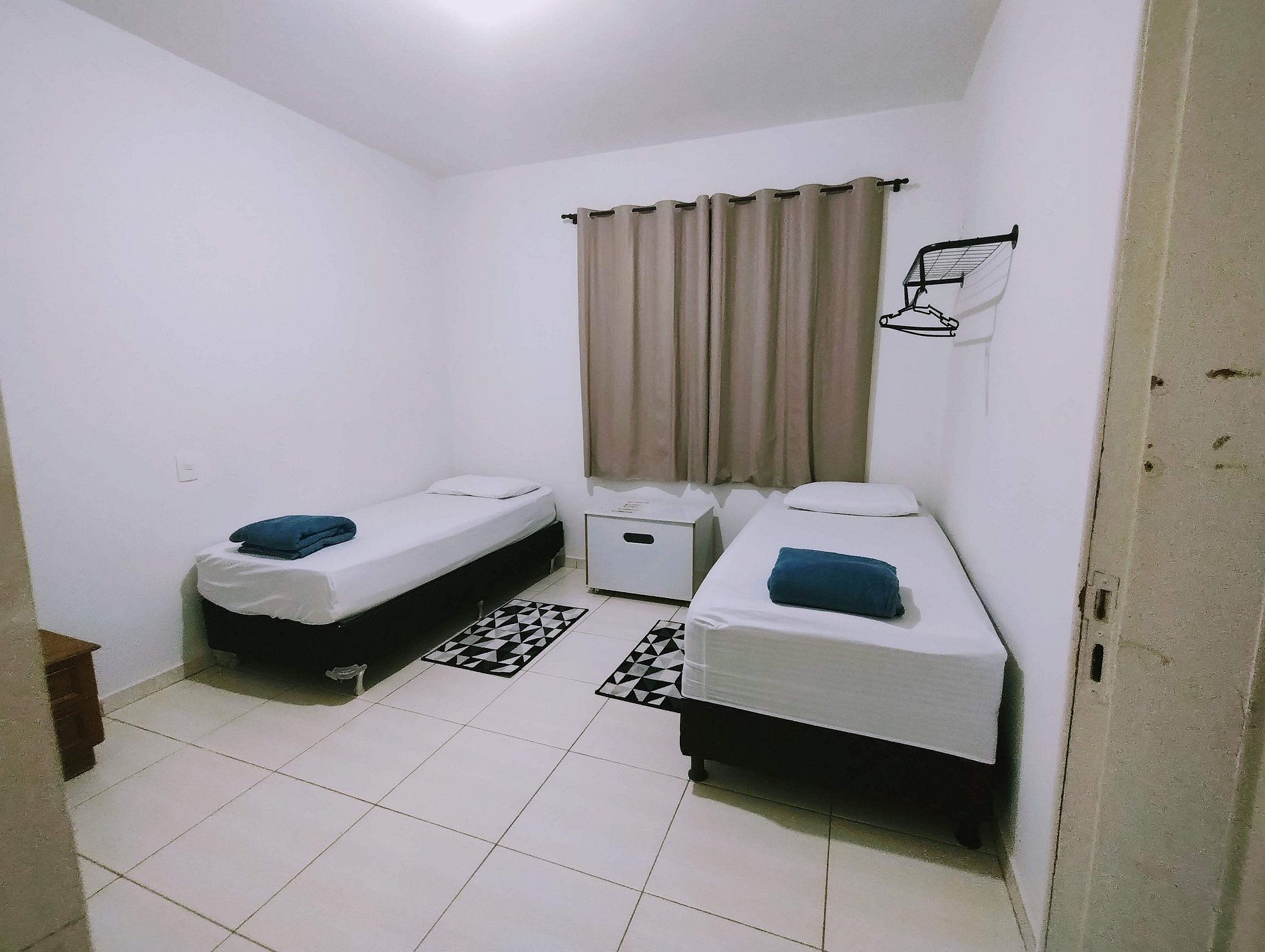 Apartamento muy amplio, con sala de TV, comedor y cocina, siendo todo el espacio de concepto abierto dando mayor comodidad a los huéspedes, un baño y tres dormitorios estando equipado con 2 camas dobles y 2 camas individuales y colchones individuales según sea necesario y comprobar valores. Lavadero con tanque y espacio con barbacoa. Parking para 2 coches con portón electrónico.
