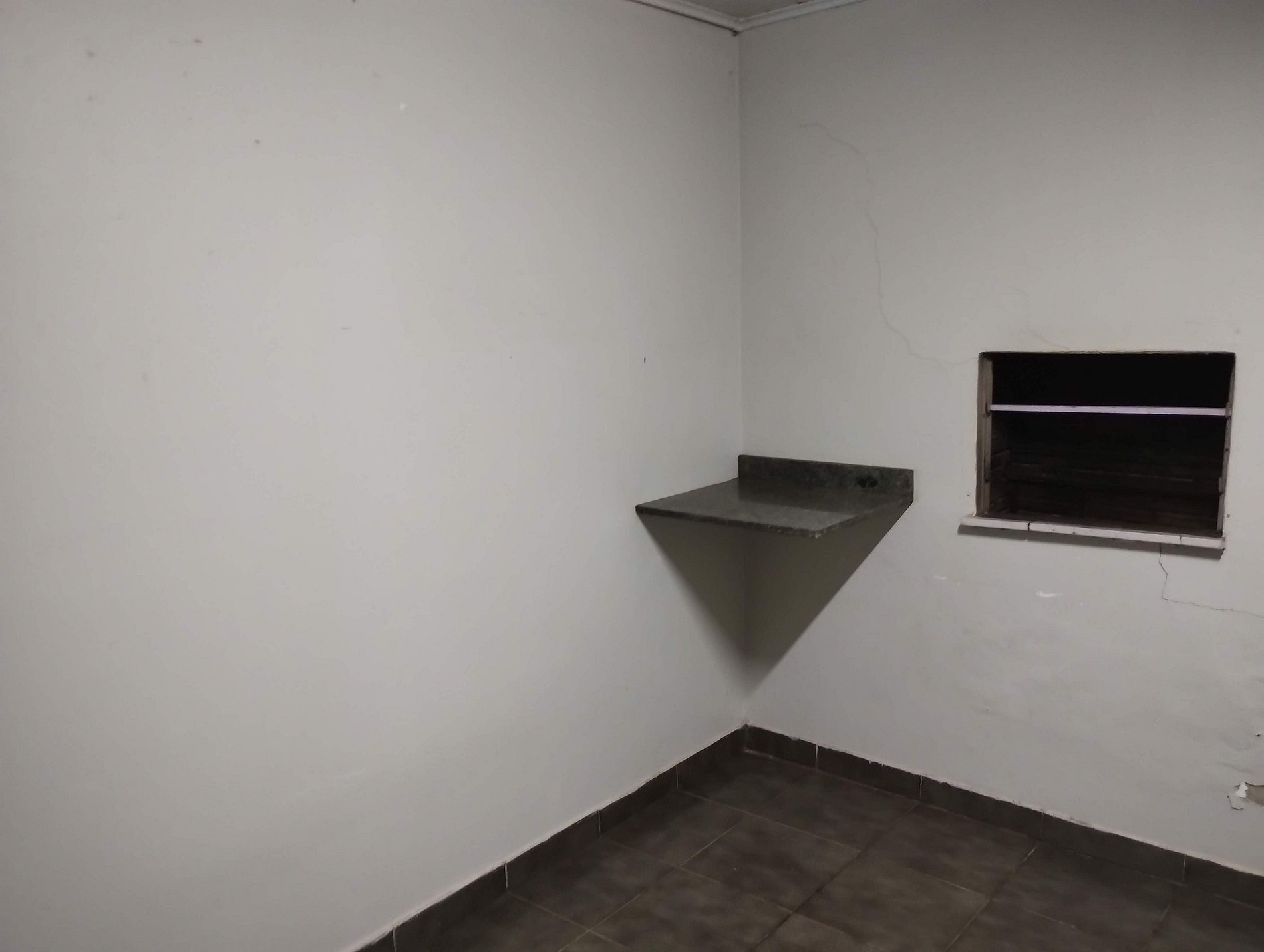 Lavanderia com tanque e espaço com uma churrasqueira.